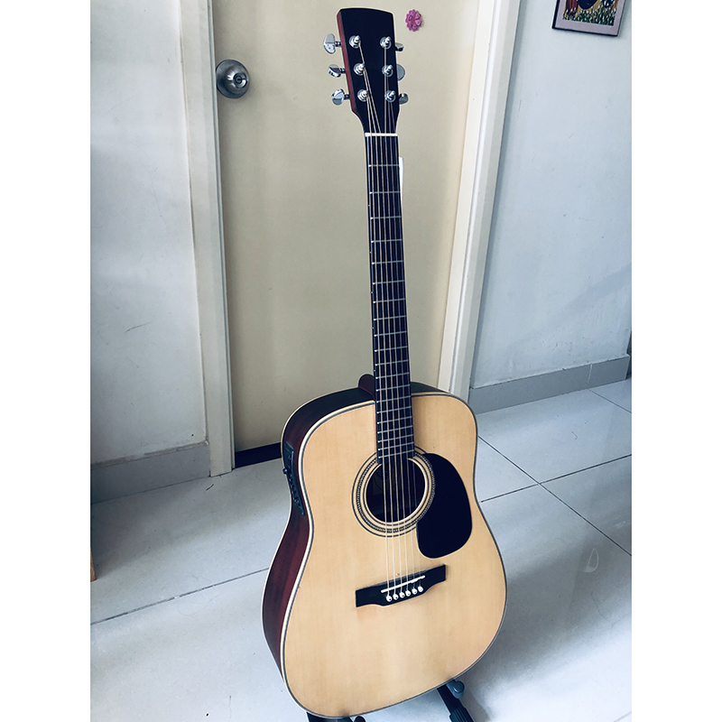 Mua tại TiktokThông tin chi tiết cây đàn acoustic DD200X có EQ 7545R Đàn Guitar acoustic có EQ Mã: DD200X Mặt: gỗ thông Eo + lưng: gỗ hồng đào Cần: gỗ thao lao, có ty chống cong cần Mặt phím: gõ mật Ngựa: gõ mật Dây: Alice AW436 Khóa: Taiwan EQ: 7545R