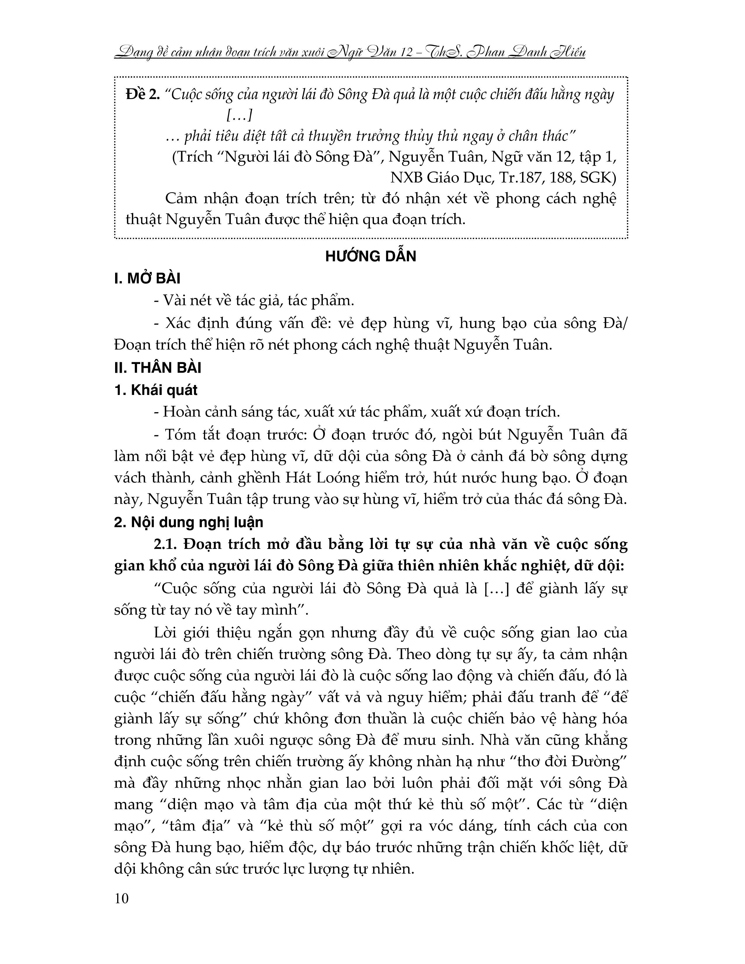 Hiện nay đề thi mới của bộ GD & ĐT thường ra theo dạng đề thi cảm nhận một doạn trích văn xuôi. Dây là dạng đề đồi hỏi người dạy và người học phải có nhiều thời gian để đầu tư nghiên cứu, phải tốn nhiều công sức, chất xám thì mới có kết quả tốt. Dạng đề này cũng đang làm khó giáo viên và học sinh, đa số vẫn đang loay hoay tìm phương án dạy học phù hợp. Trên thị trường sách tham khảo, chưa có cuốn sách nào viết theo hướng đề thi này.