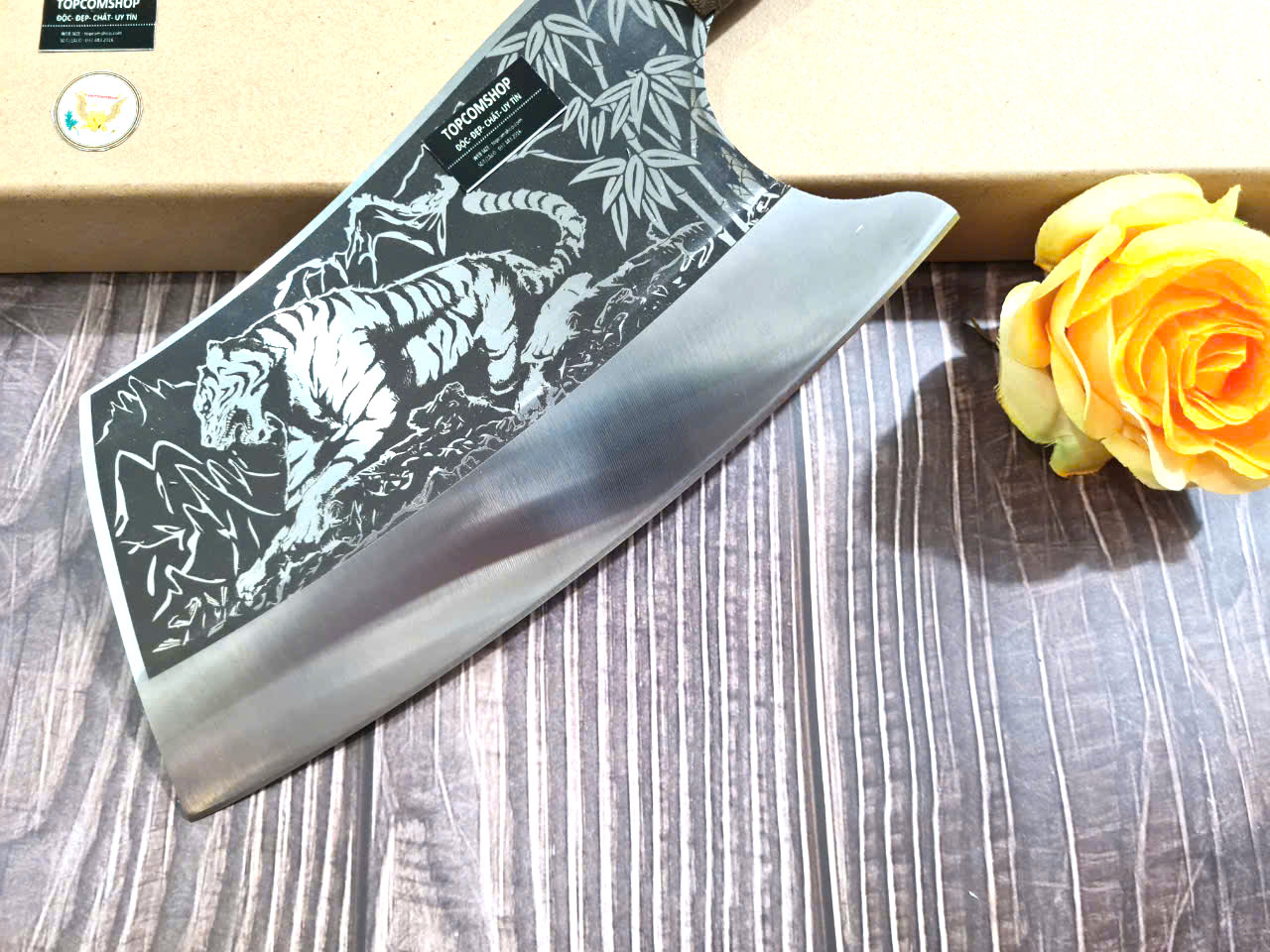 #- Chức năng: Chặt xương ống, chân giò,xương bò - Kích thước: Lưỡi: 24cm, cán: 12cm, rộng: 9,5cm, dầy: 4ly,trọng lượng: 800g