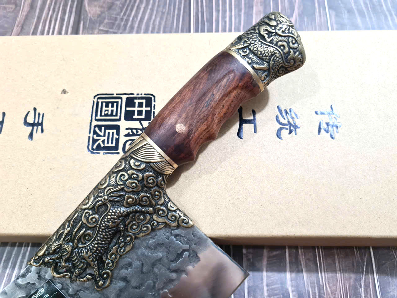 DAO PHÚC SEN - Dao Thái 22 cán mun khâu đồng đỏ - Chức năng: chuyên thái thịt và rau củ - Kích thước: Lưỡi: 22cm, cán: 12cm, rộng: 7,5cm, dầy: 1ly, trọng lượng: 280g