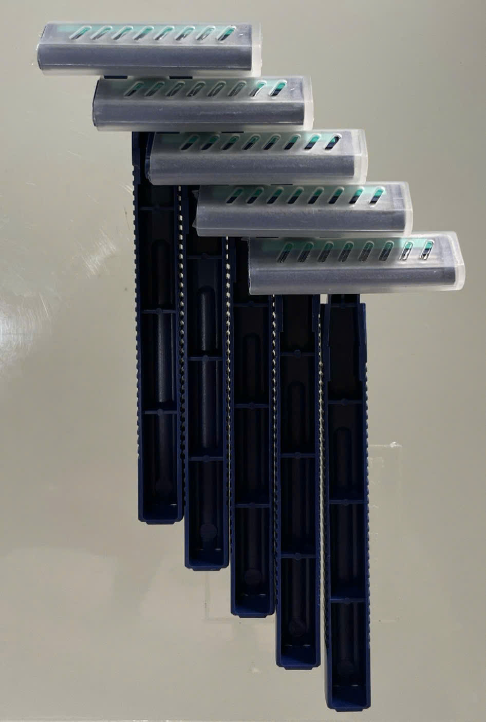 - Mỗi dao cạo đều có một nắp nhựa đảm bảo vệ sinh và an toàn khi chưa sử dụng .