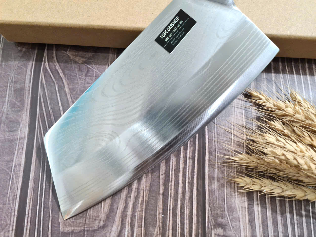 #- Chức năng: Chặt xương ống, chân giò,xương bò - Kích thước: Lưỡi: 24cm, cán: 12cm, rộng: 9,5cm, dầy: 4ly,trọng lượng: 800g