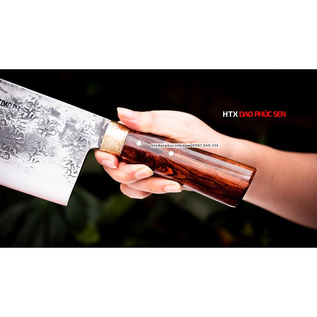 Dao Phúc Sen - Dao chặt xương 5ly - Chất liệu: 100% thép nhíp ô tô được lựa chọn và kiểm duyệt kỹ càng. - Chất liệu cán: gỗ cẩm chỉ núi - Kích thước:
