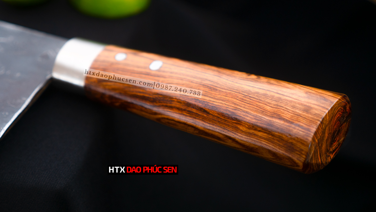 Dao Phúc Sen Chặt Xương cán Ốp cẩm ( G06OCD ) - Kích thước: lưỡi: 24cm, cán: 13cm, rộng: 10cm, dầy: 0,5, trọng lượng: 700g - 900g - Chức năng: sử dụng chuyên chặt xương