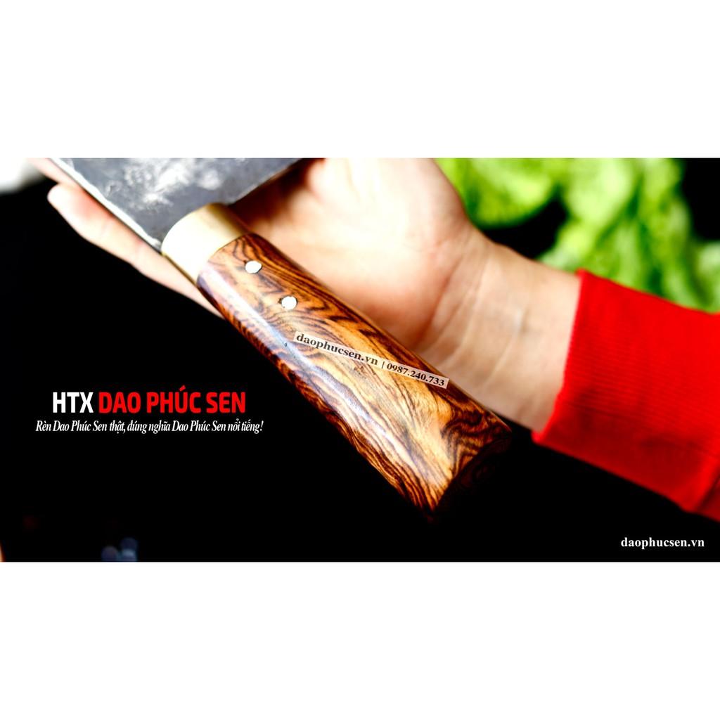 Dao Phúc Sen - Dao chặt xương 5ly - Chất liệu: 100% thép nhíp ô tô được lựa chọn và kiểm duyệt kỹ càng. - Chất liệu cán: gỗ cẩm chỉ núi - Kích thước: