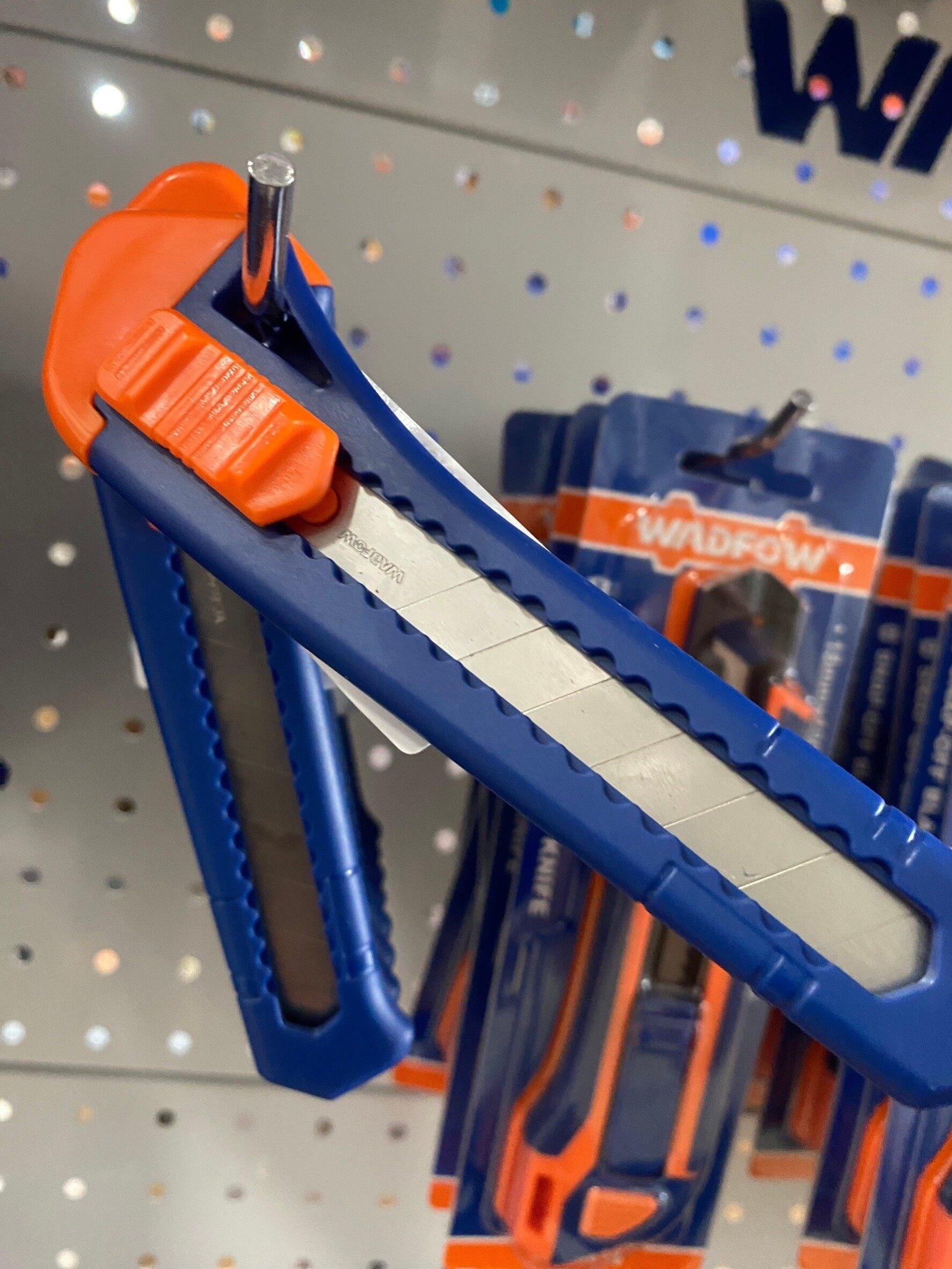 Kích thước lưỡi dao:18mmx100mm Với nút ấn phẳng Đóng gói bằng hộp màu Hãng sản xuất: WADFOW