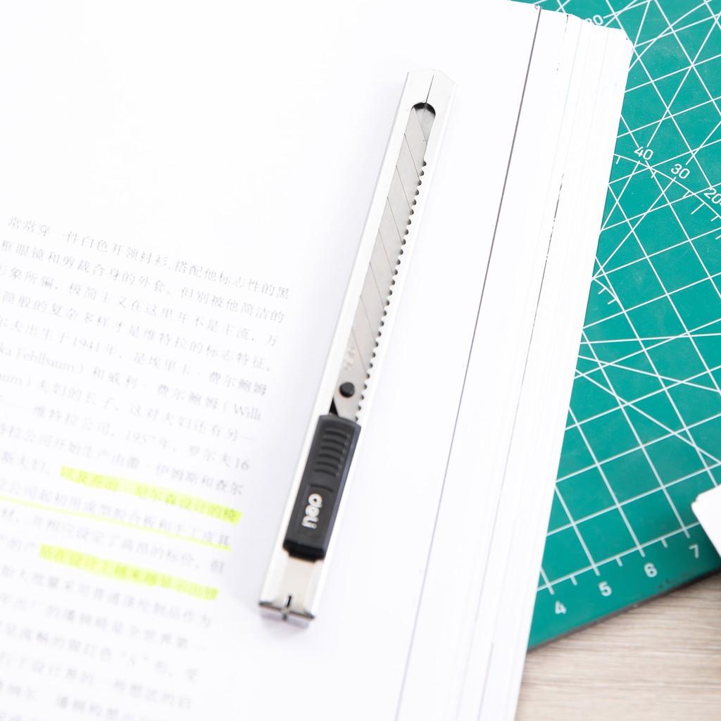 Dao Rọc Giấy Nhỏ 0.4 x 9 x 80 mm - Deli 2053 chế tạo lưỡi dao bằng hợp kim thép sắc bén, vỏ bọc bằng kim loại mạ bạc cho độ bền hoàn hảo,