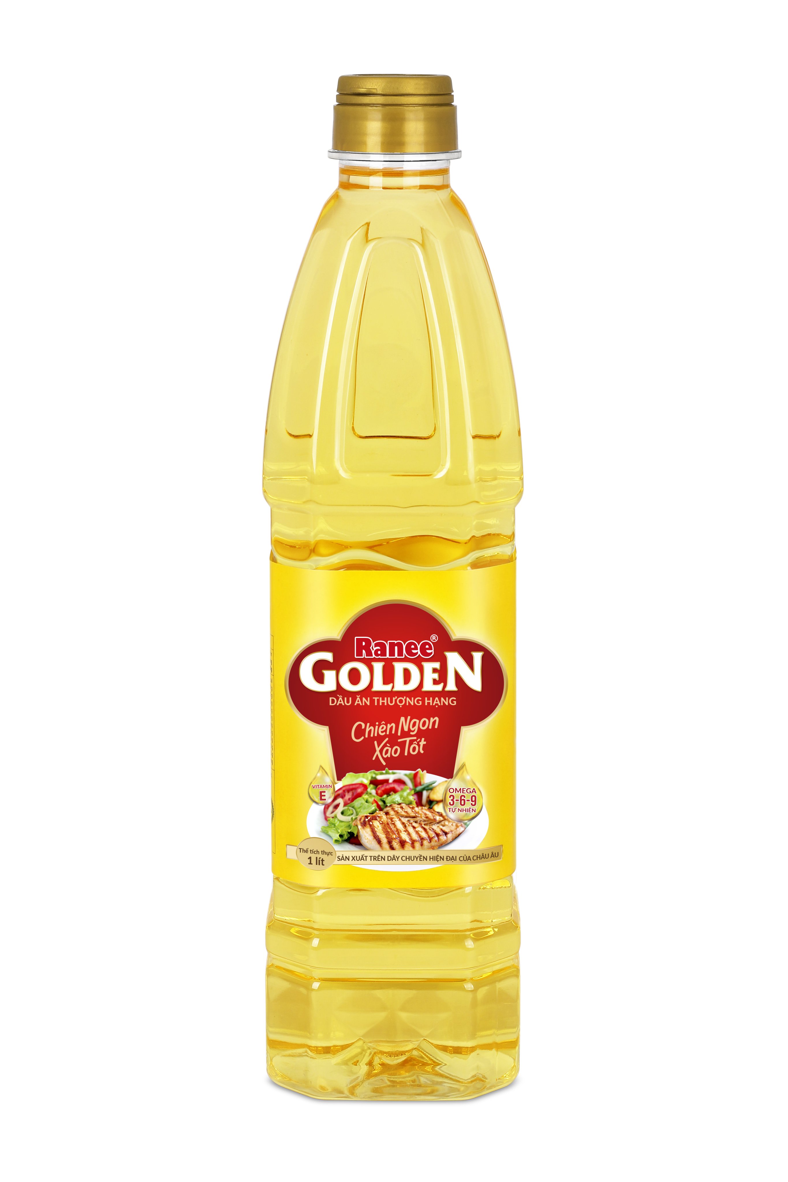 Dầu ăn thượng hạng Ranee Golden CHIÊN NGON XÀO TỐT Thành phần: + Dầu cá tinh luyện và dầu nành tinh luyện + Omega 3-6-9 và