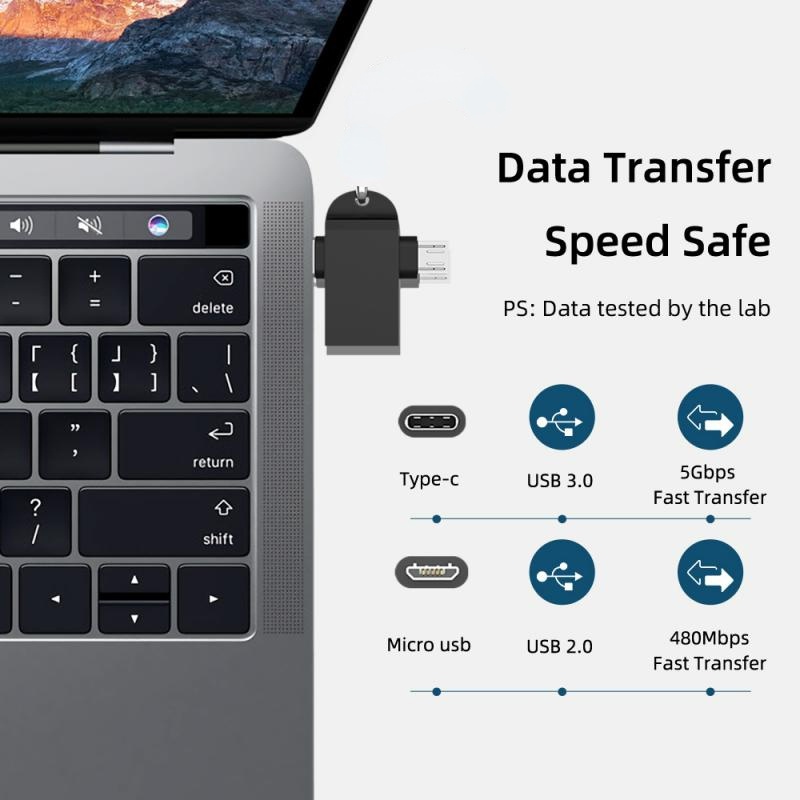 ️1. Bộ chuyển đổi OTG 2 TRONG 1, USB 3.0 Female sang Micro USB Male và Đầu nối USB C Nam Hợp kim nhôm trên bộ chuyển đổi Go.