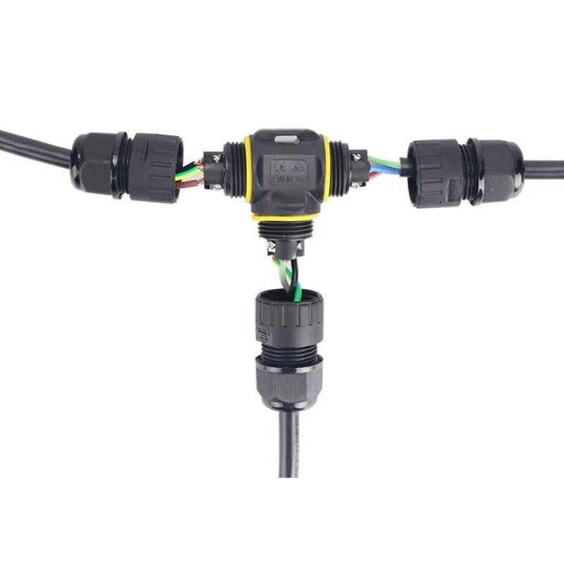 Đầu nối nhanh dây điện không thấm nước chữ T, cút nối dây điện nhanh chống nước chữ T