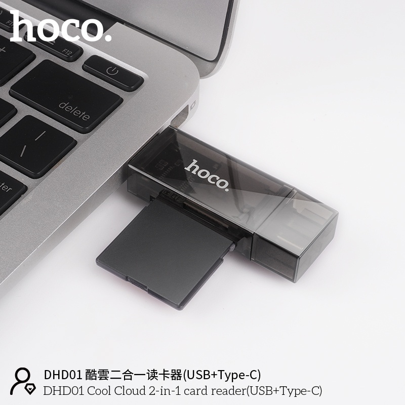 Đầu đọc thẻ nhớ USB thương hiệu hoco. * Model: HB39 -Sản xuất tại: Trung Quốc Mô tả: -Hỗ trợ thể TF và SD card, tối đa 2TB -2 đầu kết nối: Type-C và USB
