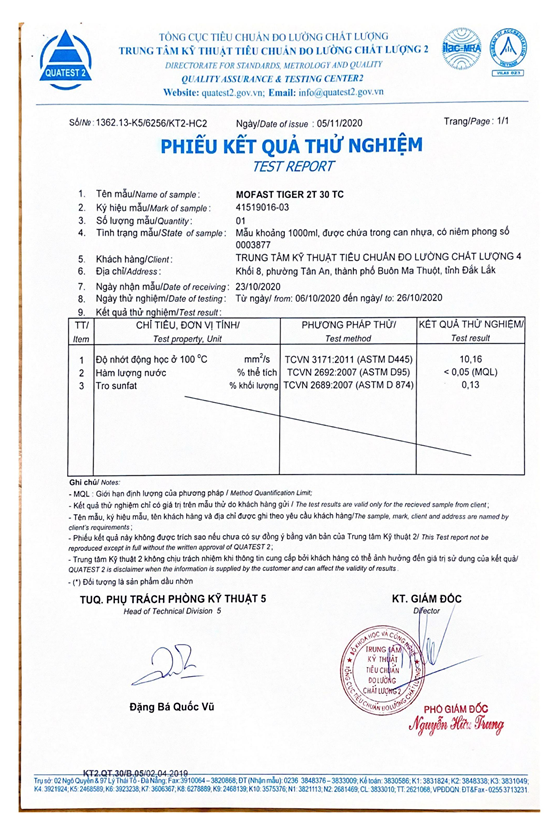 MOFAST TIGER 2T sử dụng công nghệ PIB mang lại hiệu quả bôi trơn và đốt cháy không tro hoàn hảo. Cùng với công nghệ trên và sử dụng gói phụ gia tính năng đến từ Mỹ tạo