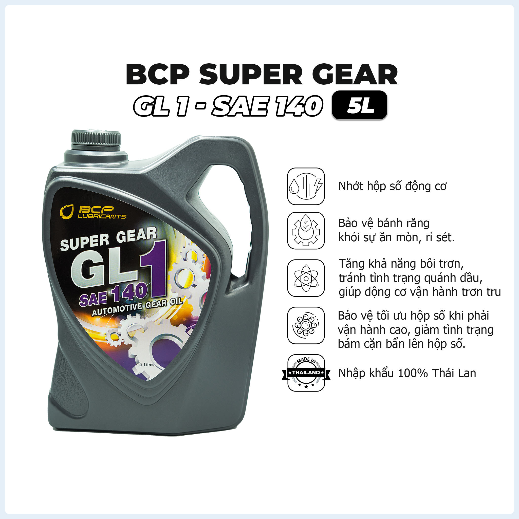 DẦU HỘP SỐ (NHỚT CẦU) Ô TÔ, XE TẢI, MÁY CÀY, XE BA GÁC CAN 5 LÍT - BCP SUPER GEAR SAE 140, SAE 90 (NHẬP KHẨU THÁI LAN 100%) Dầu hộp số ô tô,