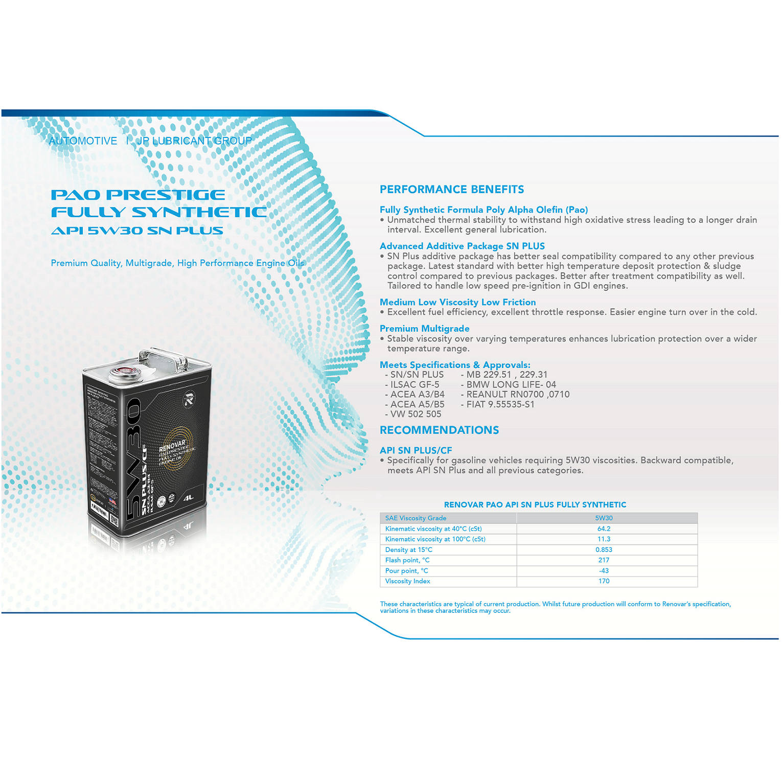 Dầu nhờn động cơ Renovar 5W30 SN Plus/CF (4L)Dầu nhờn động cơ Renovar 5W30 SN Plus/CF (4L)Dầu nhờn động cơ Renovar 5W30 SN Plus/CF (4L)