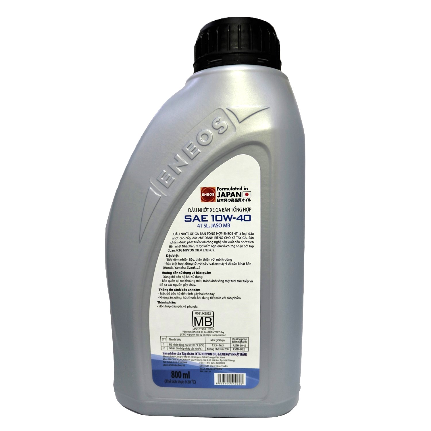 ✨Dầu nhớt bán tổng hợp động cơ xe tay ga Eneos 10W40 EN-MB-10W40 - Đạt chuẩn API SJ, Bôi trơn, làm mát, chống rỉ, làm sạch động cơ, kéo dài tuổi thọ động cơ, chịu nhiệt cao