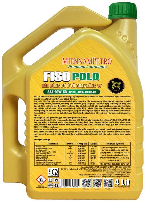 THÔNG TIN SẢN PHẨM: FISO POLO là dầu động cơ gốc khoáng cao cấp được thiết kế cho các ô tô, xe khách đời mới, vận hành ở tốc độ cao, tải trọng lớn, trong