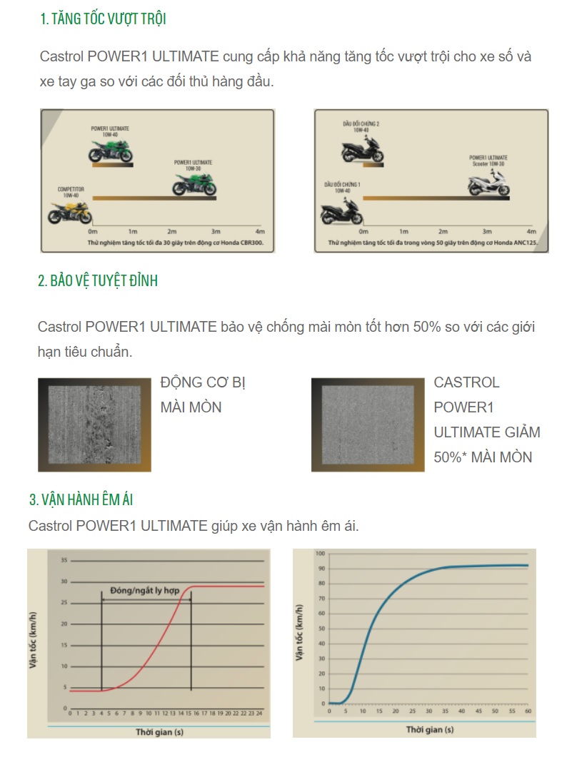 Khả năng tăng tốc phụ thuộc vào cách lái xe và độ nhớt của sản phẩm.