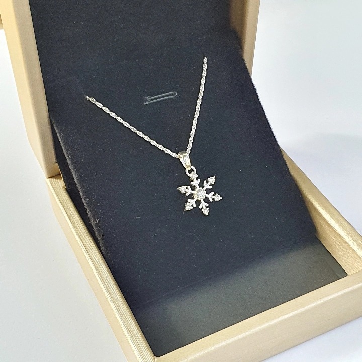 Dây Chuyền Bạc 925 Bông Tuyết Nhỏ Đính Đá CZ Cao Cấp Chính Hãng Bạc Hiểu Minh DMD523
