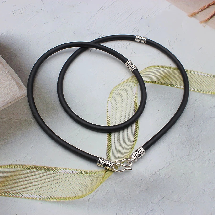 ✨Dây Chuyền Vòng Cổ Nam Cao Su Bọc Bạc Thật Nam Tính Thể Thao Dây 3mm - BẠC HIỂU MINH DCS040