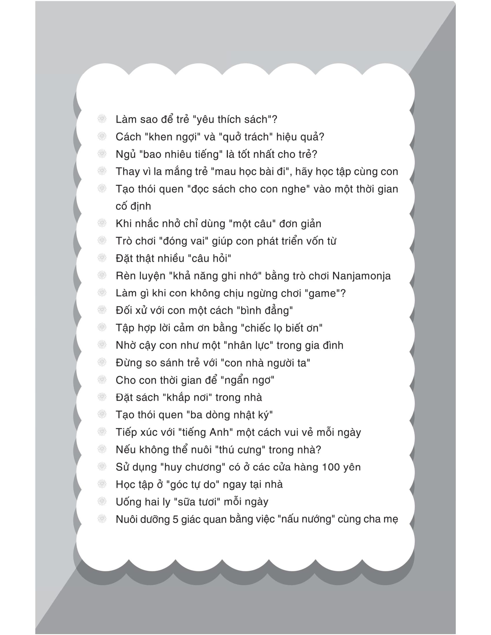 Trong cuốn sách này, tác giả đã lựa chọn cẩn thận 100 phương pháp tốt nhất về mọi mặt liên quan đến con trẻ: