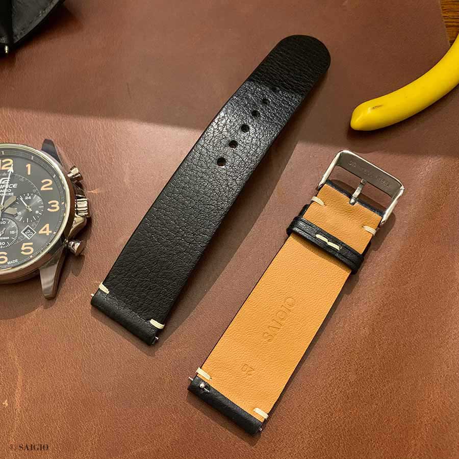 ✨Dây Da Đồng Hồ Nam, 100% Da Bò Thật, Kiểu Dáng Vintage Phẳng Mỏng, Mặt Lót Chống Thấm Mồ Hôi, Tích Hợp Lớp Gia Cố Chống Giãn Đặc Biệt, Phụ Kiện Khóa và Chốt Bằng Thép Không Gỉ 316L - Thương Hiệu SAIGIO