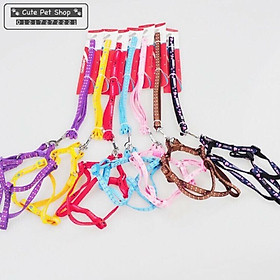 * Size: (khoảng) - Size XXS: + Dây dắt: 1.5 x 150 cm + Yếm: Vòng ngực 36-44 cm, vòng cổ 32-38 cm - Size XS: + Dây dắt: 1.5 x 150 cm + Yếm: