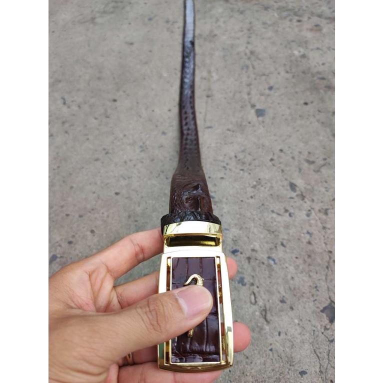Mua tại TiktokThắt lưng da cá sấu nguyên con chạy từ gù cổ qua gai lưng đến vây đuôi của cá sấu. Mặt khóa tì tự động không rỉ sét.