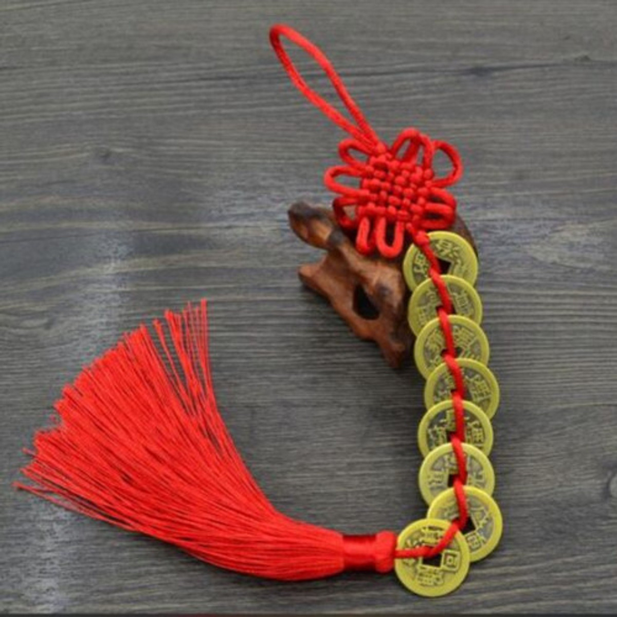 - Theo phong thủy, đồng xu là một trong những vật phẩm quan trọng. Ngày xưa, người ta dùng đồngxu đục lỗ hình tròn tượng trưng cho trời, giữa là lỗ hình vuông tượng trưng cho đất. Trời ngoài đất trong tượng trưng cho quẻ Thái tức sự thịnh vượng. Tùy theo niên hiệu các đời vua mà trên đồngxu có khắc chữ khác nhau. Đồng xu luôn là một pháp khí sử dụng rất nhiều trong Phong Thủy, là biểu tượng của nguồn tài lộc và của cải. Cát khí của nó không những làm gia tăng tài lộc mà con đem lại nhiều may mắn về công danh, sự nghiệp và giải trừ tai họa, tiểu nhân… Đồng xu thường được thắt cùng với dây màu đỏ với cách thắt độc đáo là nút thắt chữ "Đồng tâm" nhằm cầu hạnh phúc bền chặt. Màu đỏ để xỏ nhằm kích hoạt năng lượng dương của đồng xu, kèm theo dải tua rua bên dưới tượng trưng cho cát tường vô tận mang ý nghĩa trường cửu.