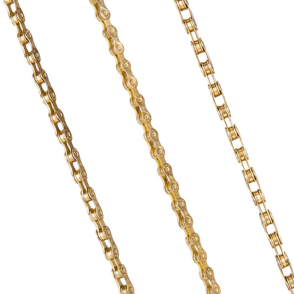 Features: The Mushroomed pin design also have better pin power and greater overall strength. The Titanium Nitride coating on the Gold chainss decreases corrosion and reduces friction. The ZTTO chains's links have a smooth radius,