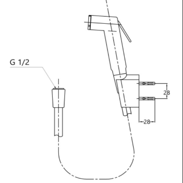 Vòi xịt vệ sinh SCHELL : Tay xịt nhựa mạ Chrome, dây dẫn nước nhựa và gác dây xịt gắn tường.