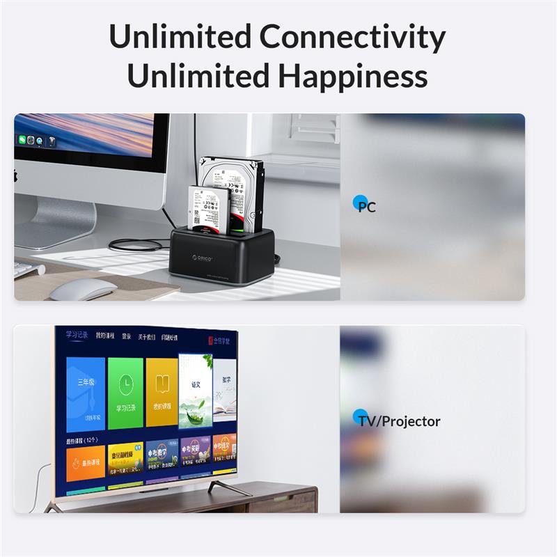 - ORICO 6829C3-V1-EU-BK-BP-HW tương thích với nhiều hệ điều hành phổ biến như Windows, Mac OS, và Linux, cho phép kết nối và sử dụng dễ dàng mà không cần phải cài đặt thêm driver. Hướng dẫn sử dụng ORICO 6829C3-V1-EU-BK-BP-HW Bước 1: Kết nối ổ cứng