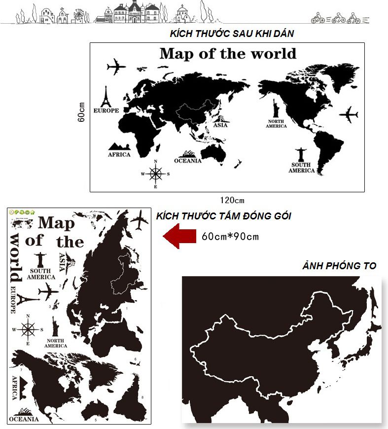 Hướng dẫn cách dán - Decal là những chi tiết ghép lại thành 1 bức tranh,nền là tường nhà bạn - Khác với giấy dán tường là dán kín phòng, decal dán tường là các