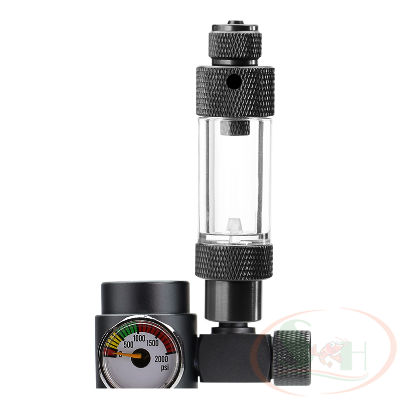 - Phiên bản đơn đầu: dùng khi gắn trực tiếp vào van tinh chỉnh co2 có đầu ra dạng ren xoay vặn, đầu còn lại gắn dây co2.