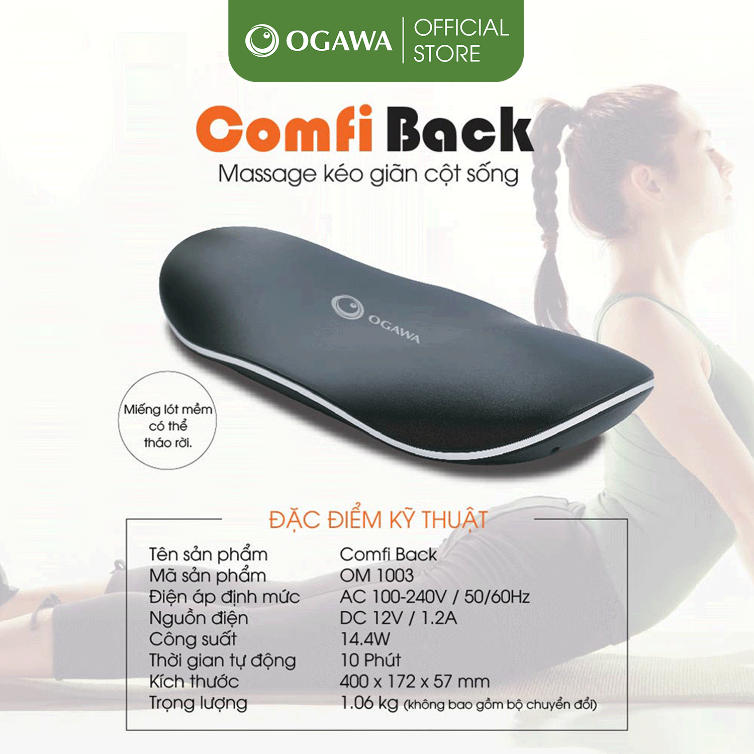 - Hỗ trợ phục hồi độ cong tự nhiên khu vực đốt sống lưng.