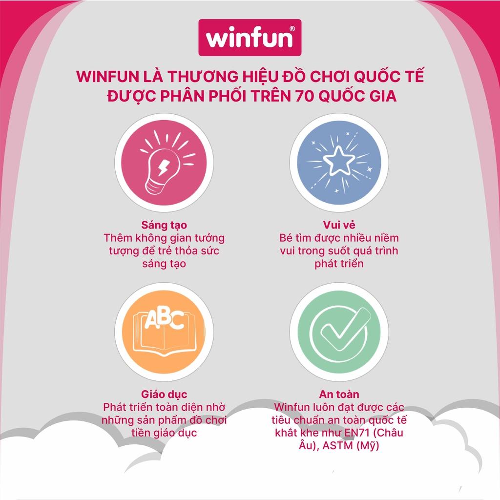 Winfun - Thương hiệu đồ chơi thông minh hàng đầu thế giới - Phát triển được phát triển bởi đội ngũ chuyên gia bao gồm các bậc phụ huynh là những nhà tâm lý học nghiên cứu và sản xuất. Với sứ mệnh sản xuất đồ chơi thông minh, an toàn, biến mỗi ngày của trẻ thơ trở nên đáng quý, đáng nhớ, Winfun mong muốn có thể xây dựng một thế giới đồ chơi hạnh phúc cho bé, cùng các bậc phụ huynh nuôi con lớn khôn từng ngày.