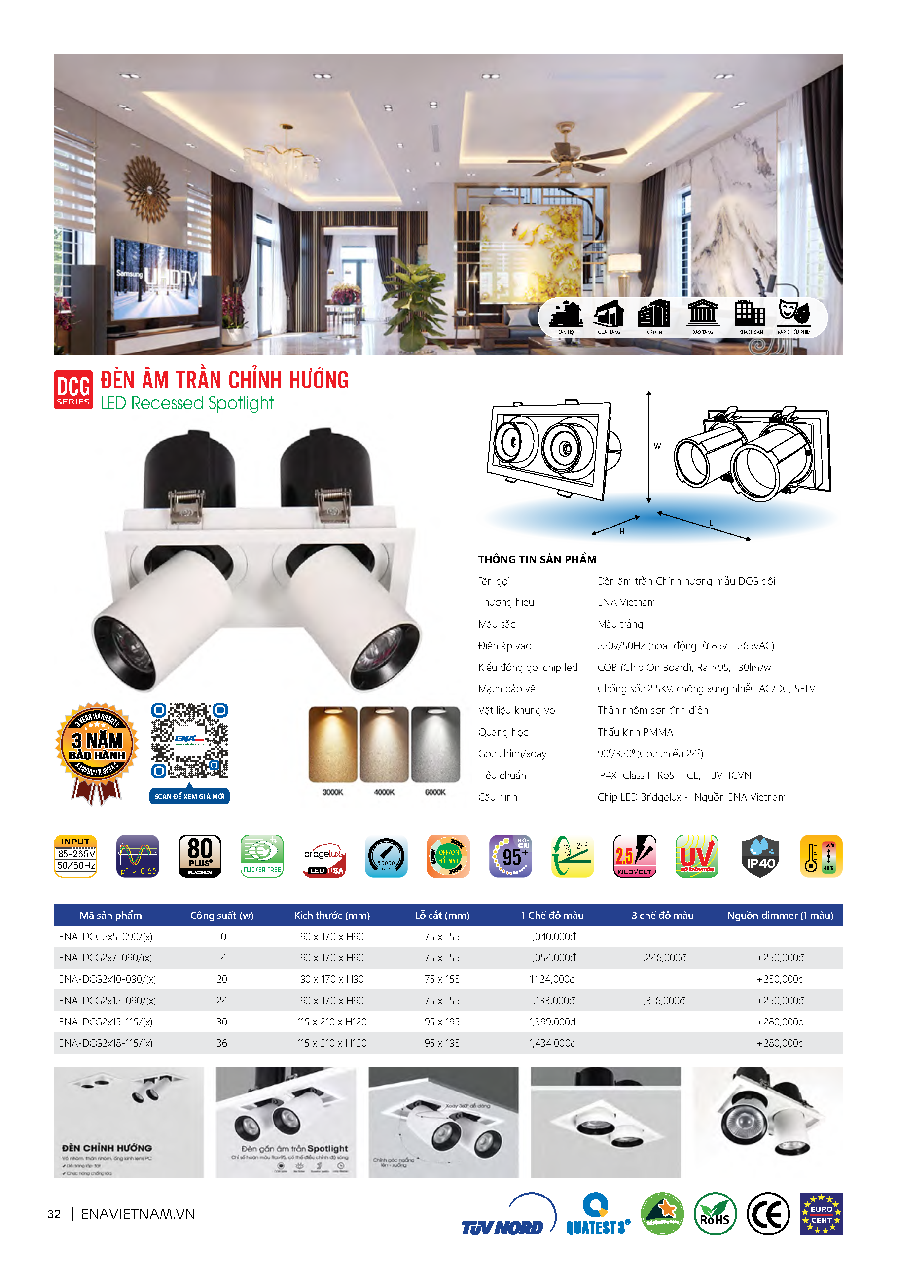 Đèn LED âm trần chỉnh hướng đôi - DCG - ENA Vietnam