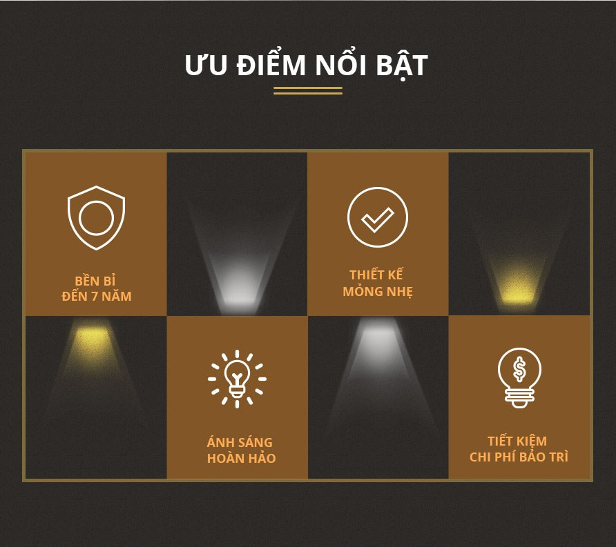 - Ánh sáng chất lượng cao, tinh khiết, phân bố đều, êm dịu, không chói mắt.