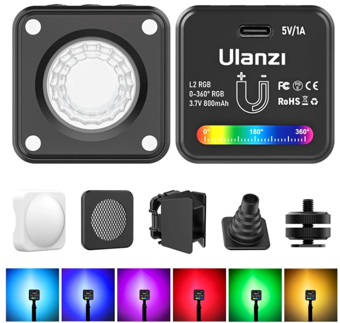 Mua tại TiktokULANZI L2 RGB COB Video Light Mini Cube Lights, LED Camera Light 360° Full Color Portable Photography Video Lighting, 800mAh Rechargeable & Magnetic Designs and 11 Dynamic Light Effects * Ulanzi L2 có 2 phiên