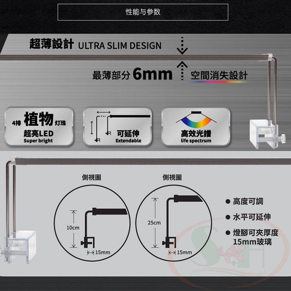 - Neo Helios XP series đã bao gồm adapter và chân kẹp đèn, không có tính năng tăng giảm sáng, có thể sử dụng cho mọi loại cá và tép cảnh nước ngọt.