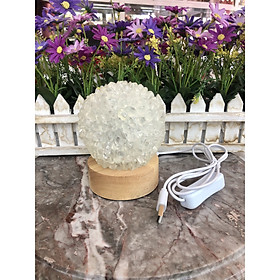 Quả Cầu Phong Thuỷ Đá Thạch Anh Trắng Tự Nhiên Loại Cao Cấp 3.1kg-13,1cm Kèm Đế Đèn