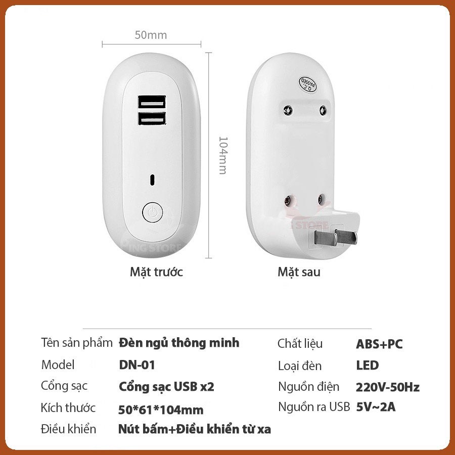 Ổ Cắm Chuyển Đổi USB Kèm Đèn Ngủ LED Dịu Nhẹ – Nhỏ Gọn, Tiện Lợi Ban Đêm Sở hữu ổ cắm chuyển đổi USB kèm đèn LED dịu nhẹ, bạn vừa có thể sạc
