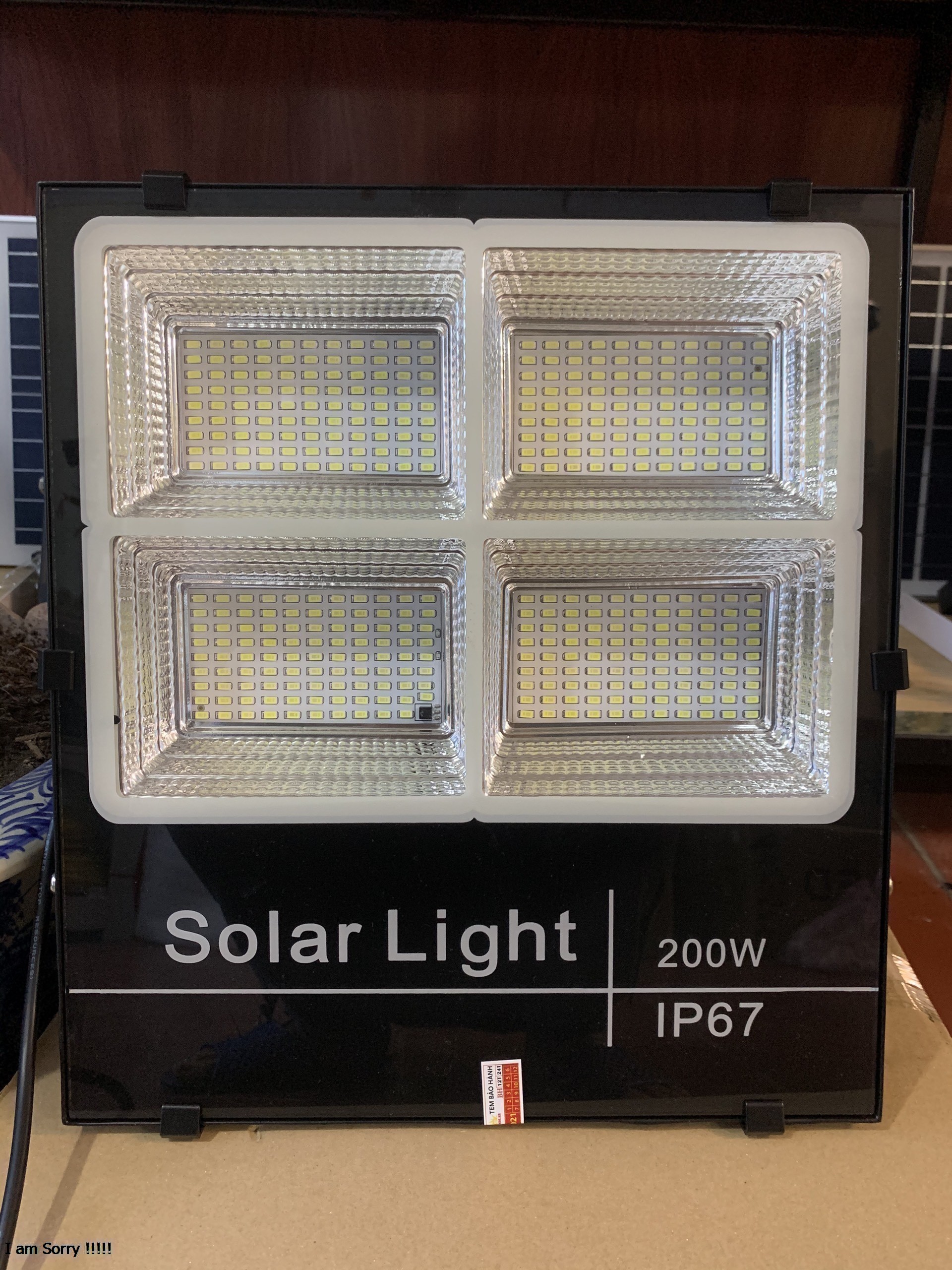 Mua tại TiktokĐèn pha năng lượng mặt trời 4 khoang công suất 200W- Tự động bật tắt khi trời tối | Mẫu 2021 Thông Số Kỹ Thuật Công Suất 200W ( 4 khoang ) Tấm pin 200W: 35*53cm- 6v/30W Pin 200W: 3.2V- 25.000 maH Thời gian sạc: 4-6h Tiêu chuẩn: IP67 Thơi gian sử dụng: 8-14h Bảo Hành: 2 năm