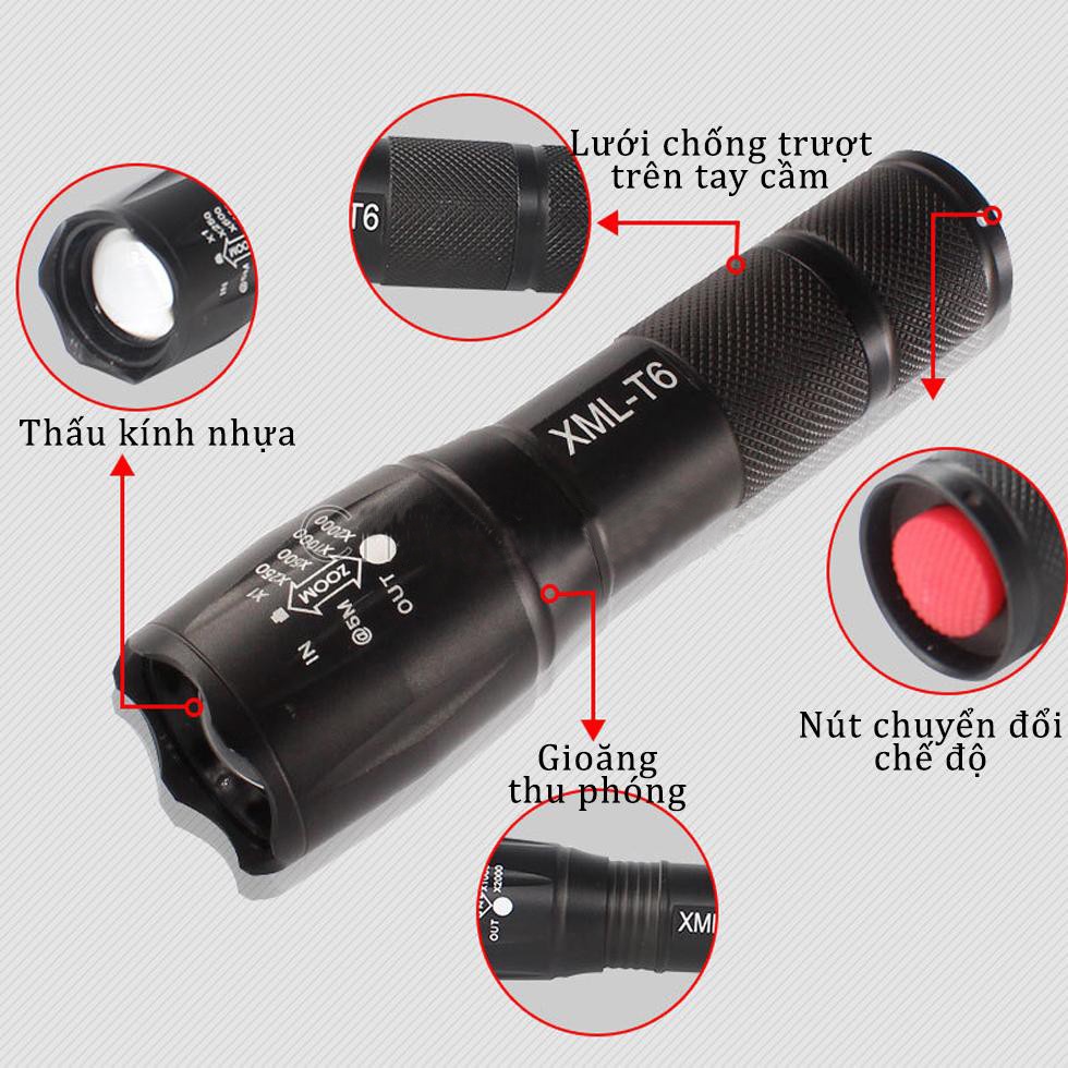 ĐÈN PIN MINI SIÊU SÁNG HÀNG FULL BOX VÀ PHỤ KIỆN - Đèn pin siêu sáng , đèn pin cầm tay model XML-T6 siêu sáng với công suất siêu sáng, sử dụng bộ pin sạc