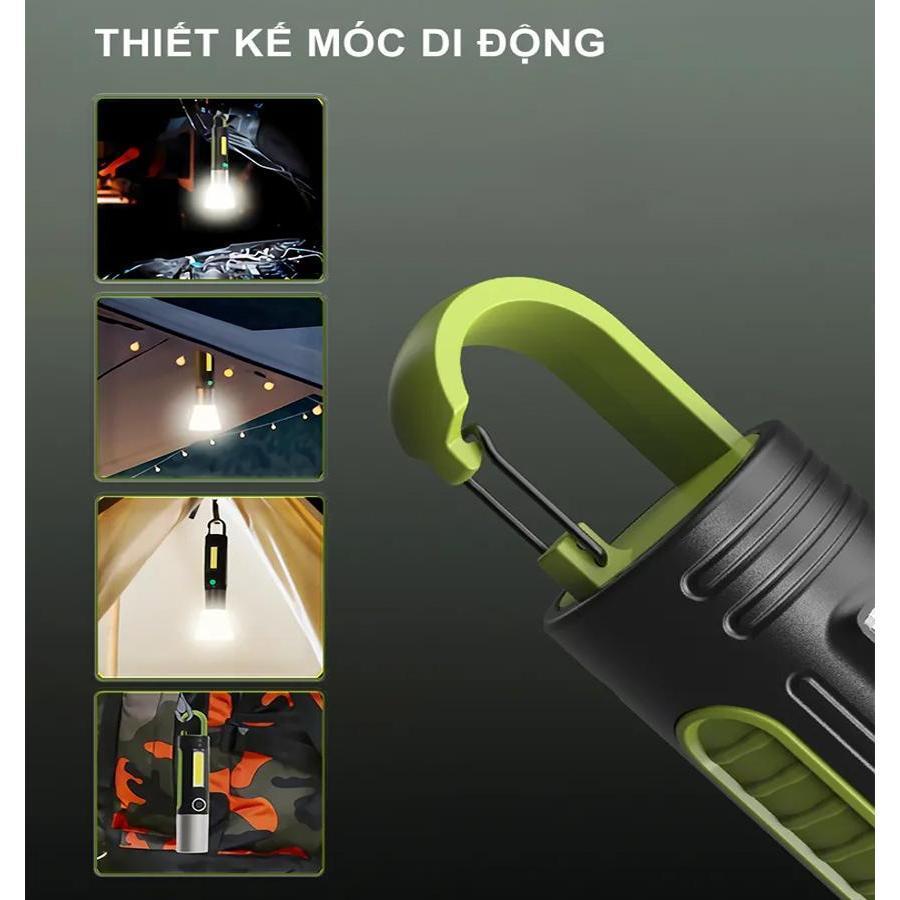 Đèn pin COB siêu sáng vỏ nhôm cao cấp pin trâu sạc lại bằng cổng C