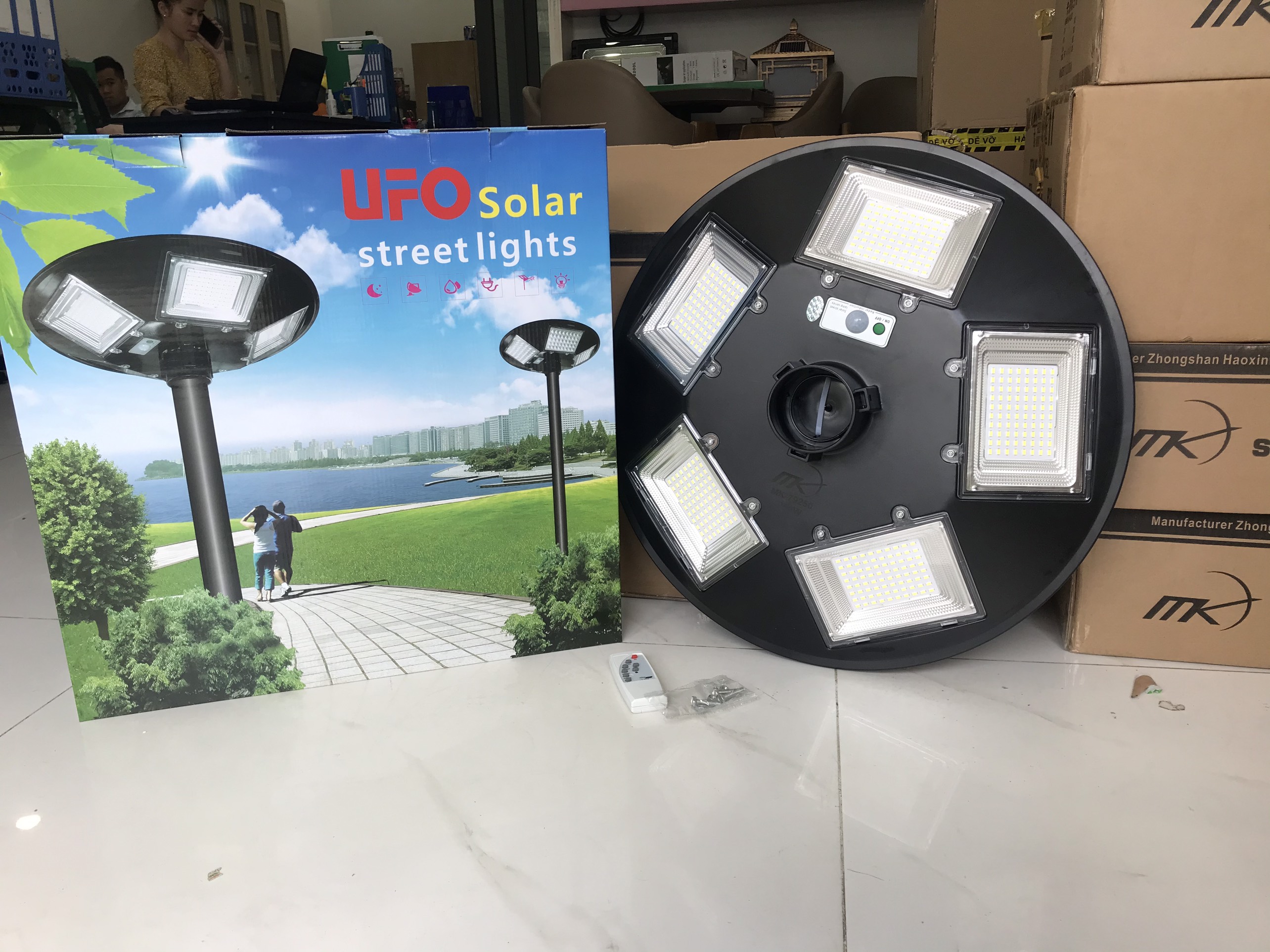 Đèn năng lượng mặt trời sân vườn, công viên UFO-500w-400 Chip Led. (5 ô) Đèn Đĩa Bay chuyên dùng trong các dự án lắp đặt đèn ở công viên, sân vườn, chung cư, bệnh viện…