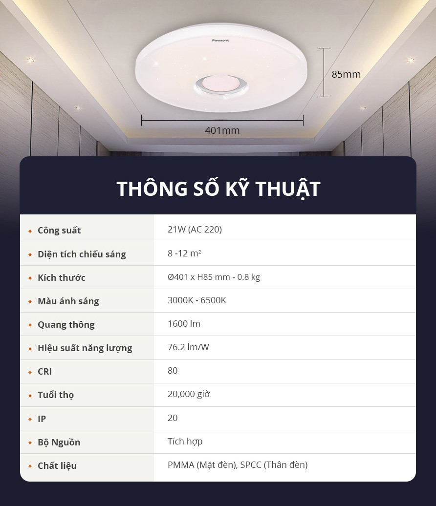 Mua tại TiktokĐèn trần ánh sao Starry Panasonic HHXZ201688 21W ƯU ĐIỂM NỔI BẬT