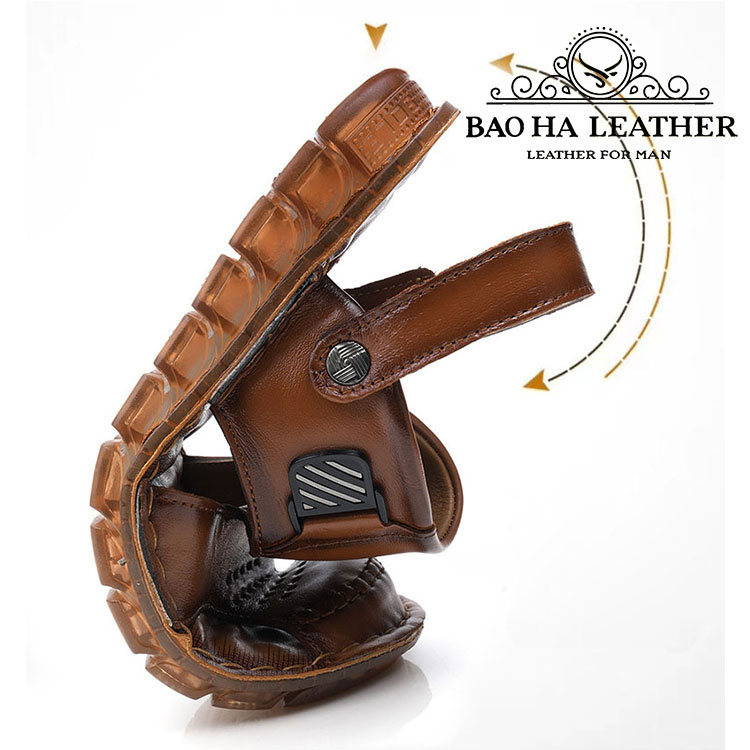 - Sandal Nam với chất liệu Da Bò bền đẹp kết hợp đế cao su êm nhẹ chống trơn trượt giúp bạn Nam luôn thoải mái, tự tin khi đi chơi, dạo phố, đi làm