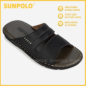 ✨Dép Da Nam, Dép Quai Ngang Da Bò SUNPOLO AQN027 (Đen)