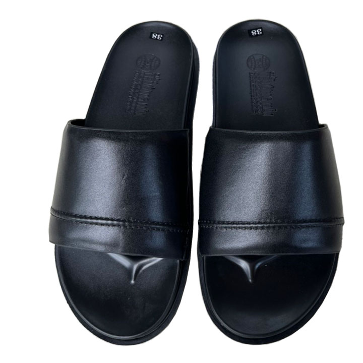 Dép Da Nam  - Lịch Lãm & Thoải Mái Mỗi Ngày - Chất liệu cao cấp: Sử dụng da tổng hợp chất lượng, mềm mại, bền bỉ theo thời gian, mang lại cảm giác êm ái và thoáng khí cho bàn chân. - Thiết kế sang trọng: Tông màu đen lịch lãm, kết hợp với đường chỉ may tinh tế và logo kim loại nổi bật – tôn lên vẻ nam tính, trưởng thành. - Đế chống trượt: Đế EVA siêu nhẹ, độ đàn hồi tốt, kết hợp vân đế tăng độ ma sát – an toàn khi di chuyển trên nhiều bề mặt. - Form ôm chân: Thiết kế bản quai ngang rộng, ôm gọn bàn chân nhưng không gây bí bách, dễ xỏ vào – thích hợp cho người trung niên và người lớn tuổi. - Ứng dụng đa năng: Phù hợp sử dụng trong nhà, đi dạo phố, đến văn phòng hoặc các dịp gặp gỡ thân mật. Lựa chọn tuyệt vời cho quý ông yêu thích sự thoải mái, đơn giản nhưng vẫn giữ được nét tinh tế trong từng bước chân.