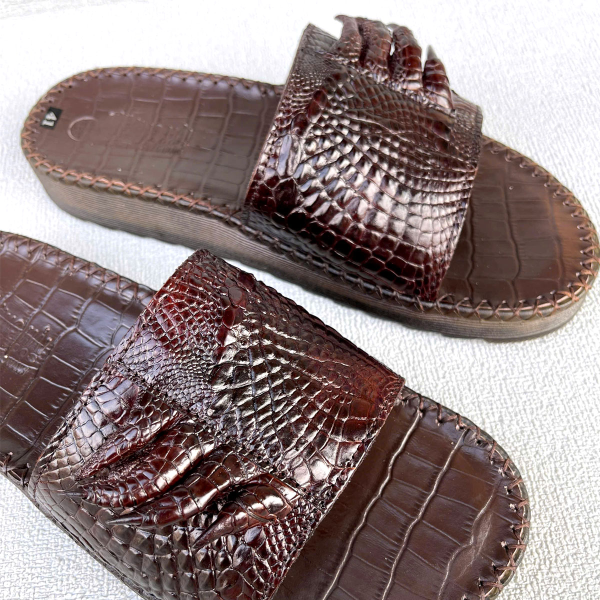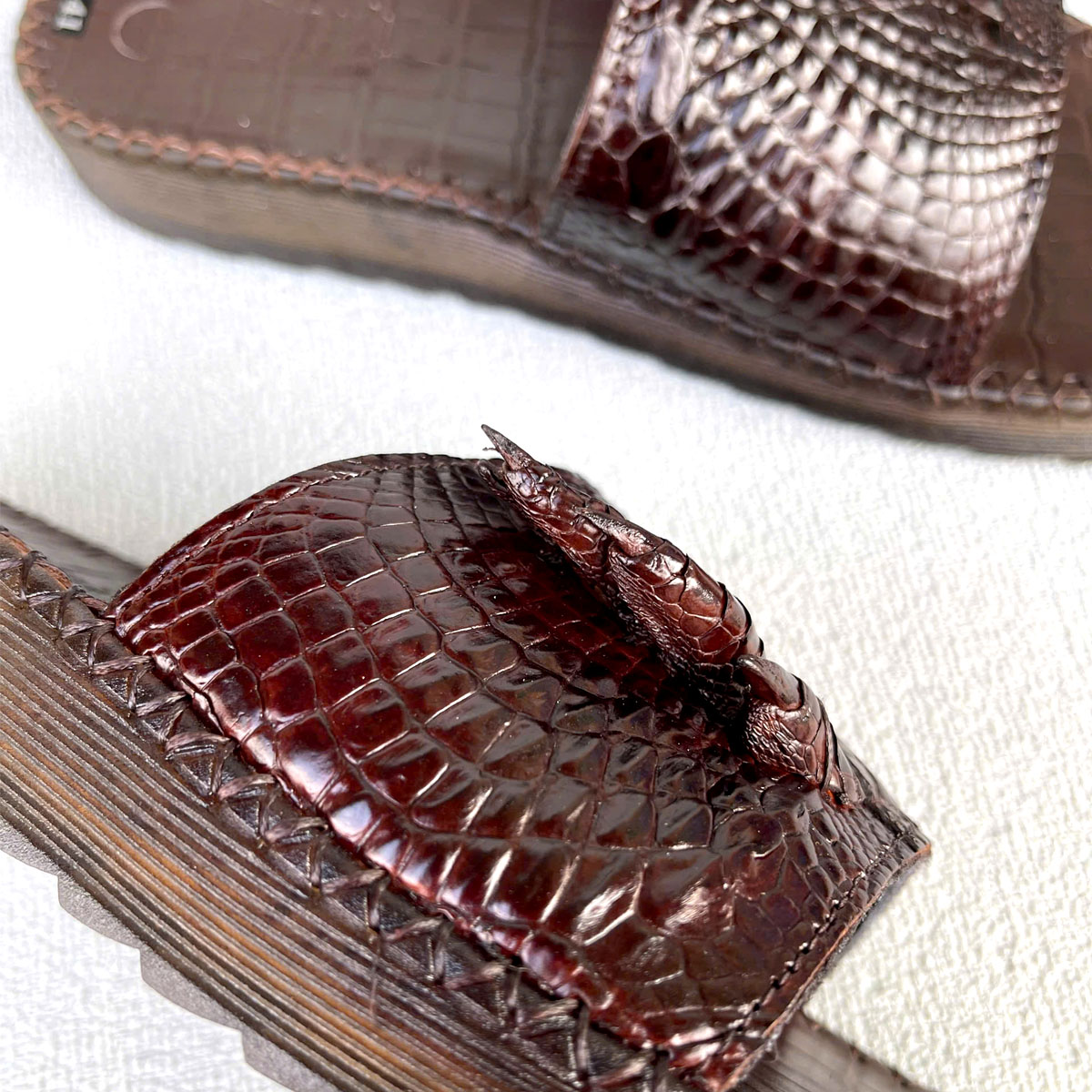 Dép Da Cá Sấu Quai Ngang Nam, Dép Quai Da Cá Sấu Thật 100% Nguyên Móng Đế Bọc Da Bò CS3